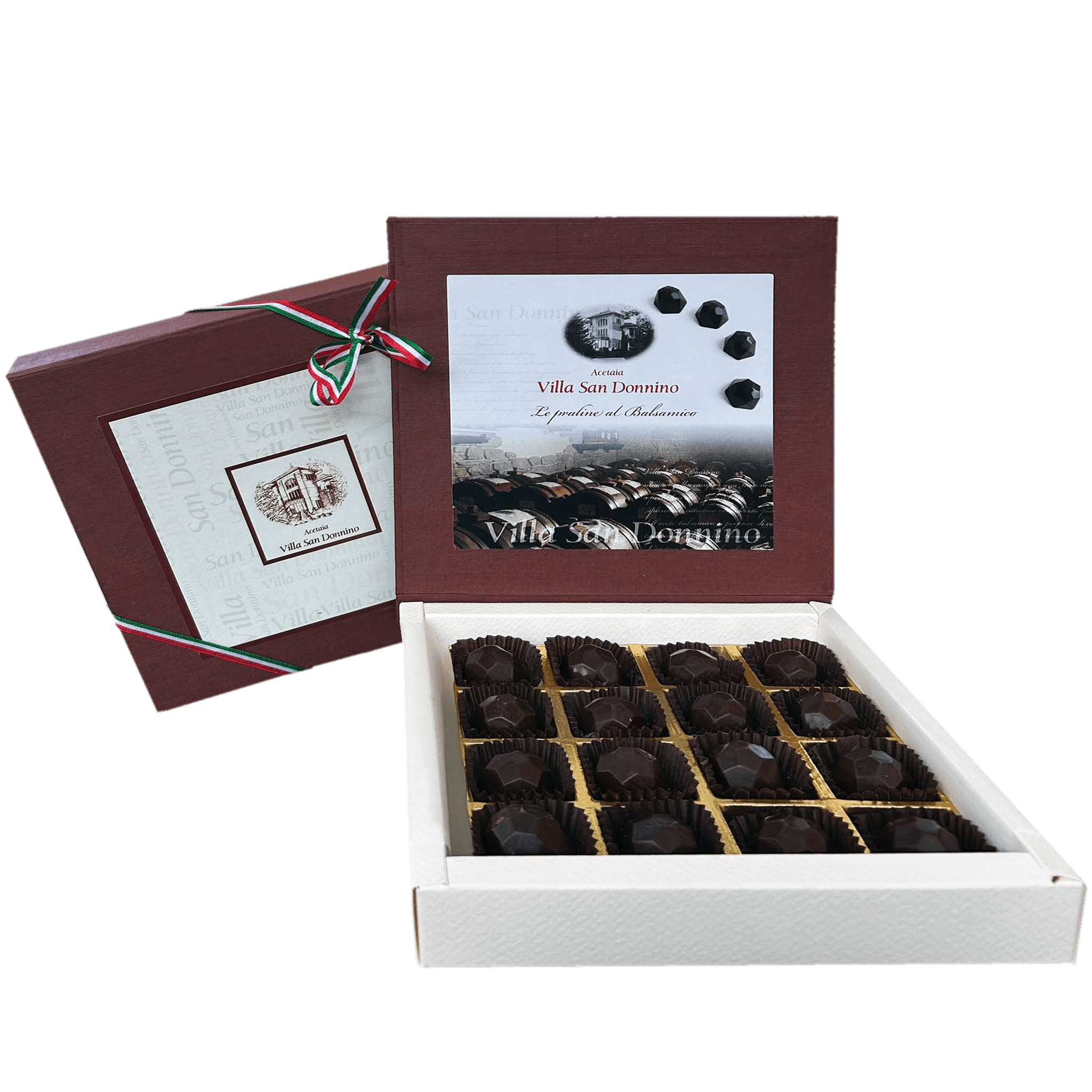 Balsamic chocolates are artisan dark chocolates filled with a balsamic vinegar cream or ganache, made using San Donnino’s aged balsamic: deep cocoa bitterness on the outside, and a soft, sweet-tangy balsamic center on the inside. This isn’t a candy — it’s more of a slow, tasting experience, very much rooted in the Modena food culture where balsamic vinegar is produced. Perfect as a dessert bite, with espresso, or alongside a dessert wine,